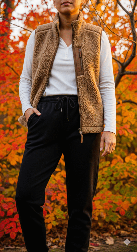 Accessorizing plays a crucial role in transforming an outfit into a complete look, especially when it comes to styling trending sweatpants and a sherpa vest for fall. The right accessories can elevate your ensemble, adding layers of style and individuality to your wardrobe. To begin with, bags are fundamental; consider opting for a chic crossbody or a structured tote in earth tones or rich jewel colors that beautifully complement the textures of your sherpa vest. A bag not only serves a practical purpose but also enhances the visual appeal of your outfit.